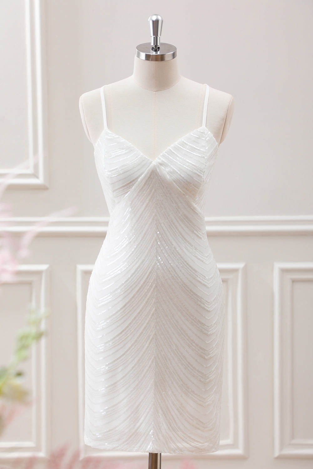 Sparkly White Bodycon Homecoming Dress with Sequins